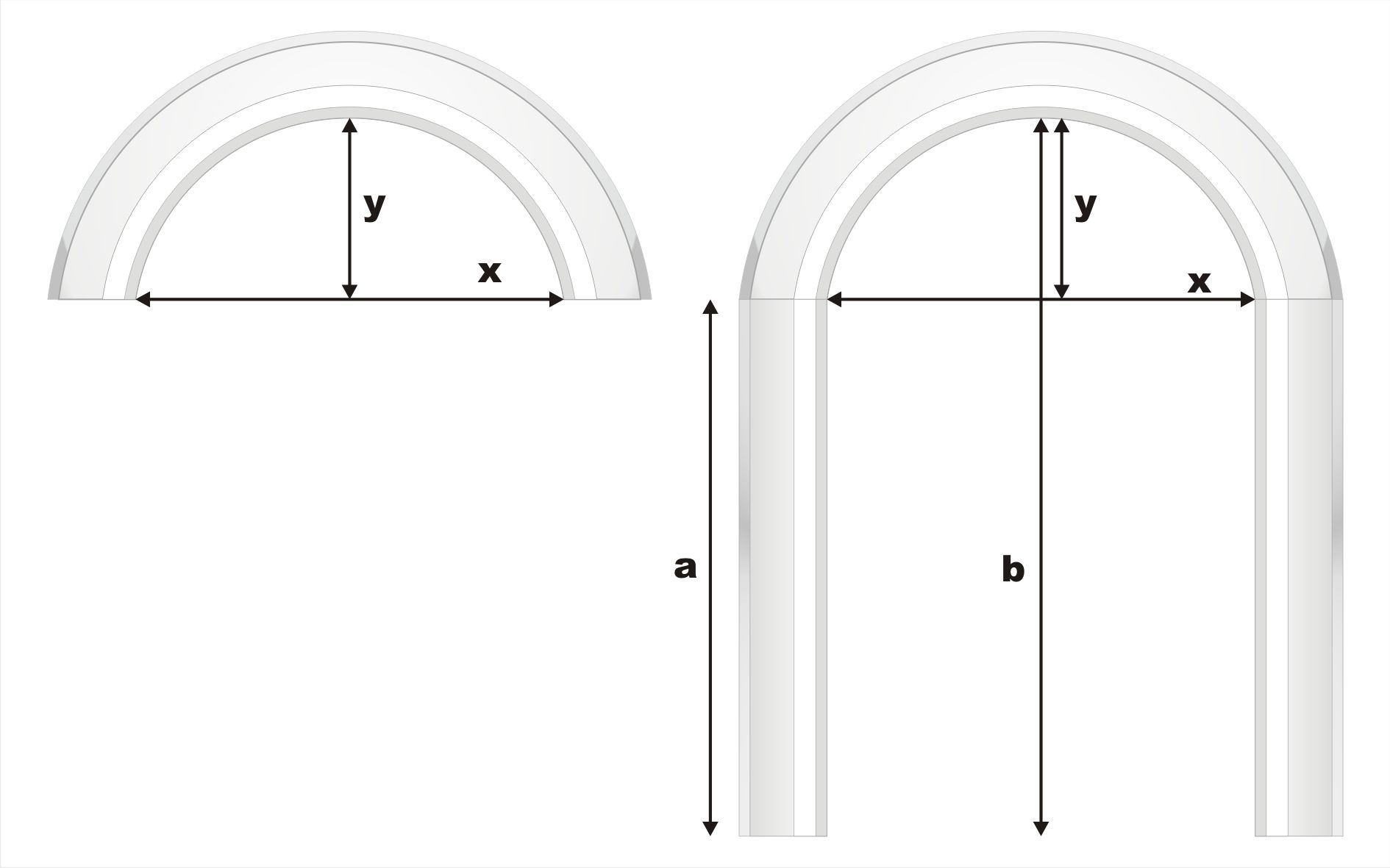 Az ív vizszintes méretére " x" , valamint magassági méretére " y" van